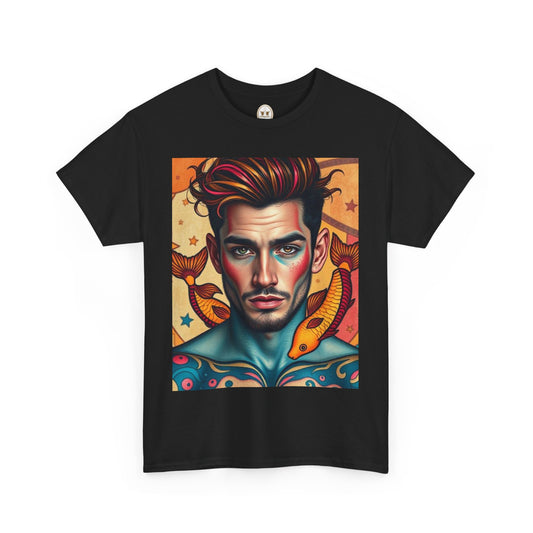 Unisex Heavy Cotton T-Shirt, Pisces, Zodiac v2, Sexy Art