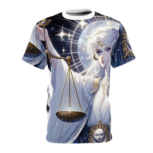 Unisex Cut & Sew T-Shirt (AOP), Angel with Scale, Libra Zodiac Design, Regular fit, 100% Polyester