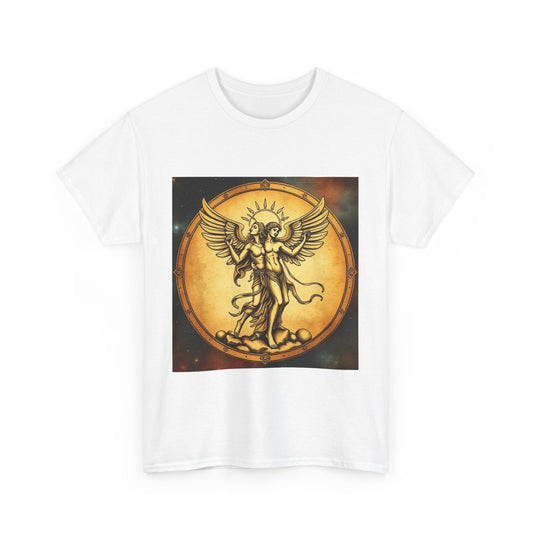 Unisex Heavy Cotton T-Shirt, Gold Angel, Symbol, Virgo Zodiac Design