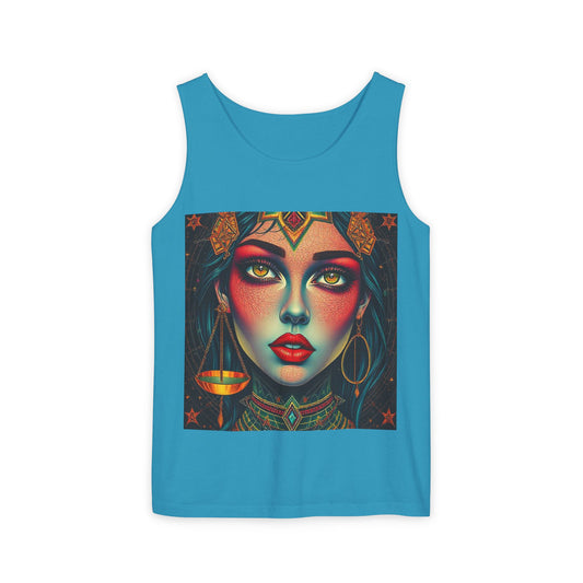 Unisex Garment-Dyed, Tank Top, Libra Design, Pop Art, 100% US cotton