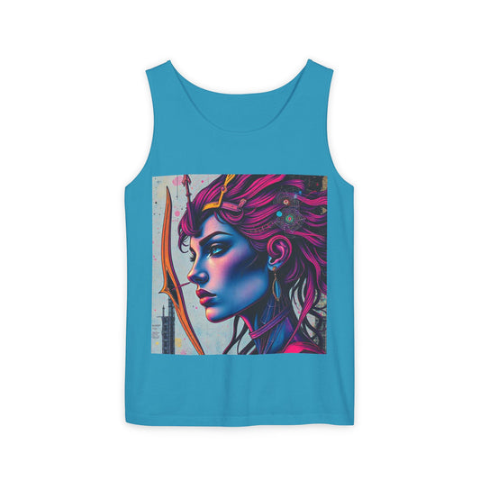 Unisex Garment-Dyed, Tank Top, Sagittarius Design, Pop Art v1, 100% US cotton