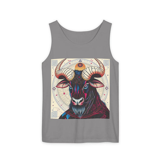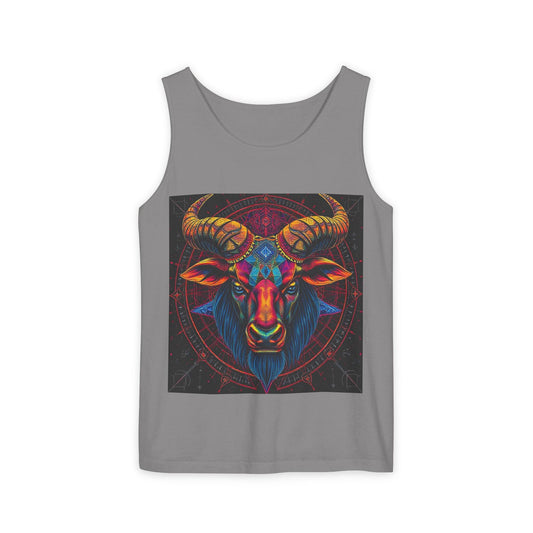 Unisex Garment-Dyed, Tank Top, Taurus Design, Pop Art v1, 100% US cotton