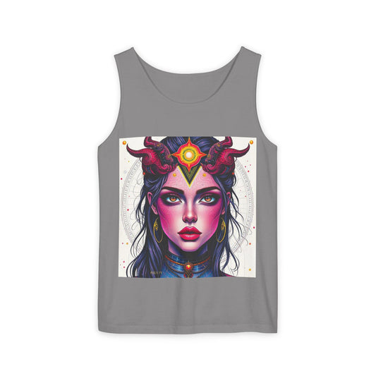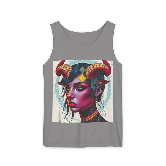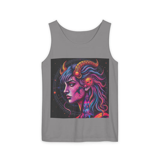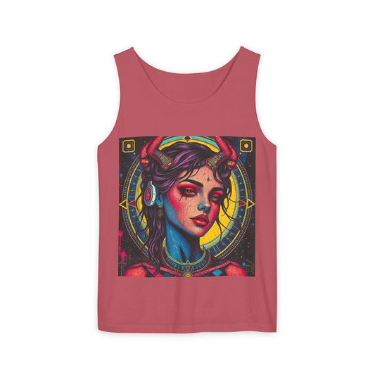 Unisex Garment-Dyed, Tank Top, Aries Design, Pop Art, 100% Ringspun US cotton