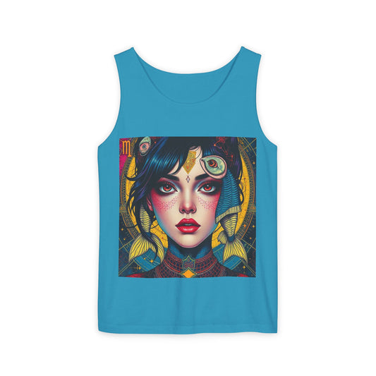 Unisex Garment-Dyed, Tank Top, Scorpio Design, Pop Art v1, 100% US cotton