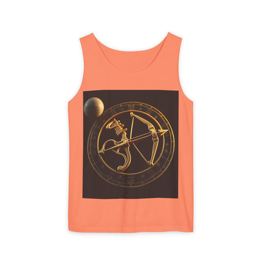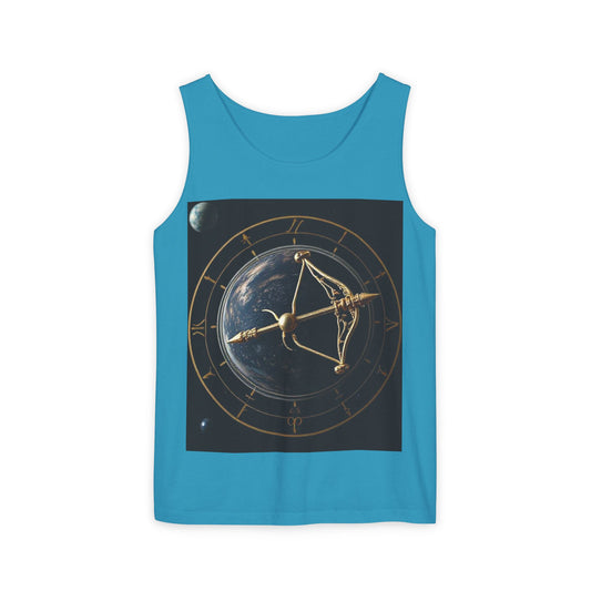 Unisex Garment-Dyed, Tank Top, Sagittarius Design, Planet Symbol, 100% US cotton