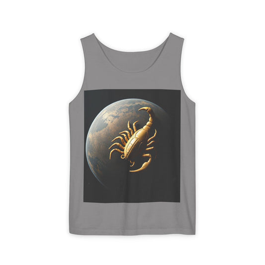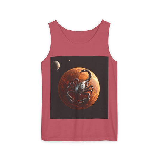 Unisex Garment-Dyed, Tank Top, Scorpio Design, Planet Symbol, 100% US cotton