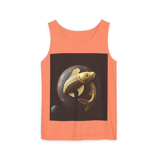 Unisex Garment-Dyed, Tank Top, Pisces Design, Space Animal v1, 100% US cotton